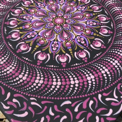 Lila-arany pontfestett mandala – 30×30 cm
